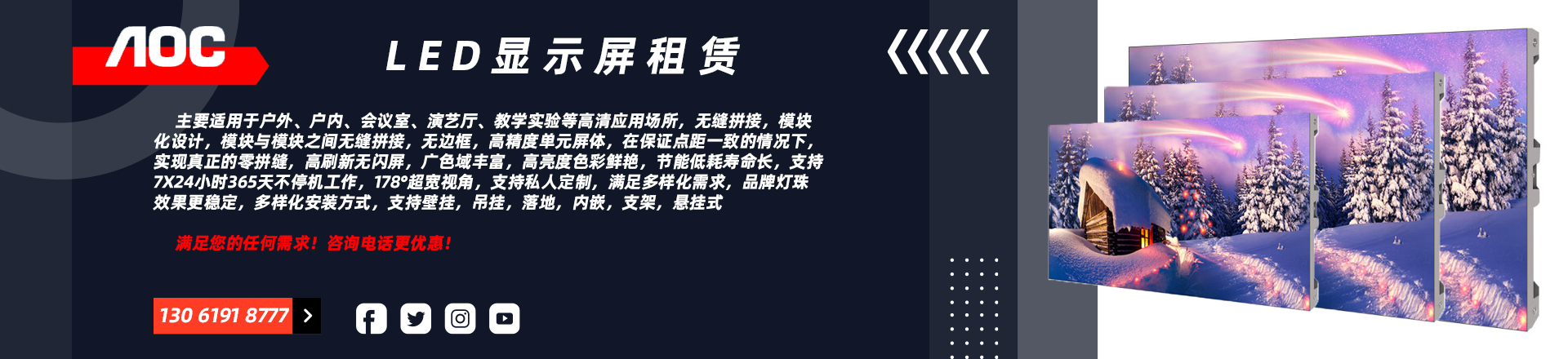 AOCLED全彩屏p1.56p1.86p2p3p1.25室內(nèi)LED顯示屏戶外單色屏宣傳廣告高刷直播舞臺大屏幕租賃可拆卸